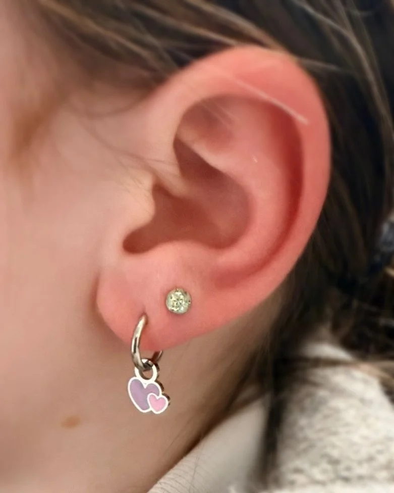 Clean, Relaxed and comfortable environment with a certificate & lolly after they see their beautiful new earrings. Longer time is booked for children to ensure safety & a happy experience.